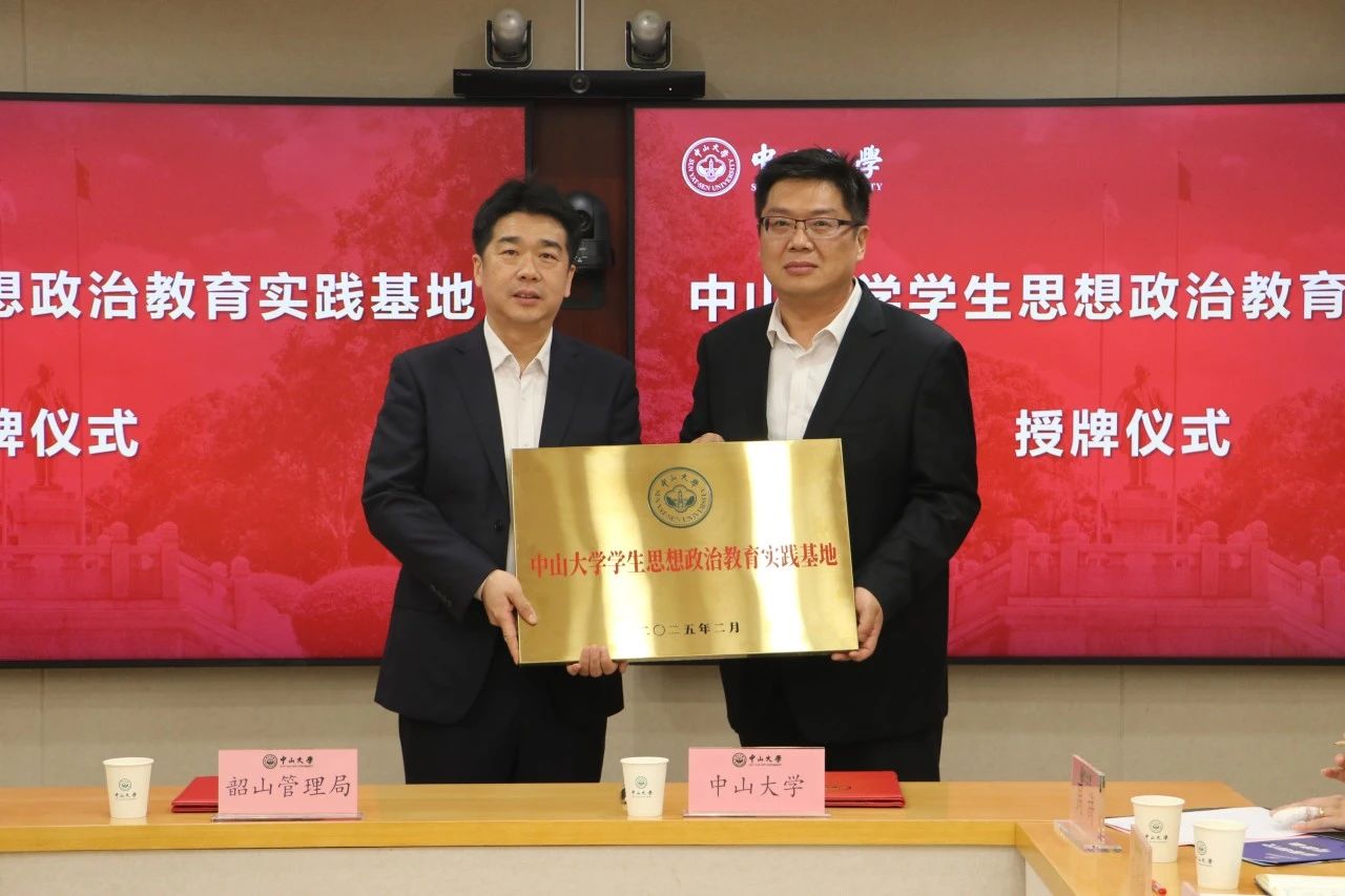 2月27日下午,中山大学与湖南省韶山管理局共建“中山大学学生思想政治教育实践基地”签约、授牌仪式在中山大学南校园举行。湖南省韶山管理局局长张希慧、湖南省韶山管理局副局长付维华、韶山毛泽东同志纪念馆馆长阳国利、韶山毛泽东图书馆馆长朱春飞,中山大学校党委副书记张琪、博物馆(校史馆)馆长徐俊忠、党委学生工作部部长靳祥鹏、女仆 党委书记林俊洪等相关同志等出席签约仪式。