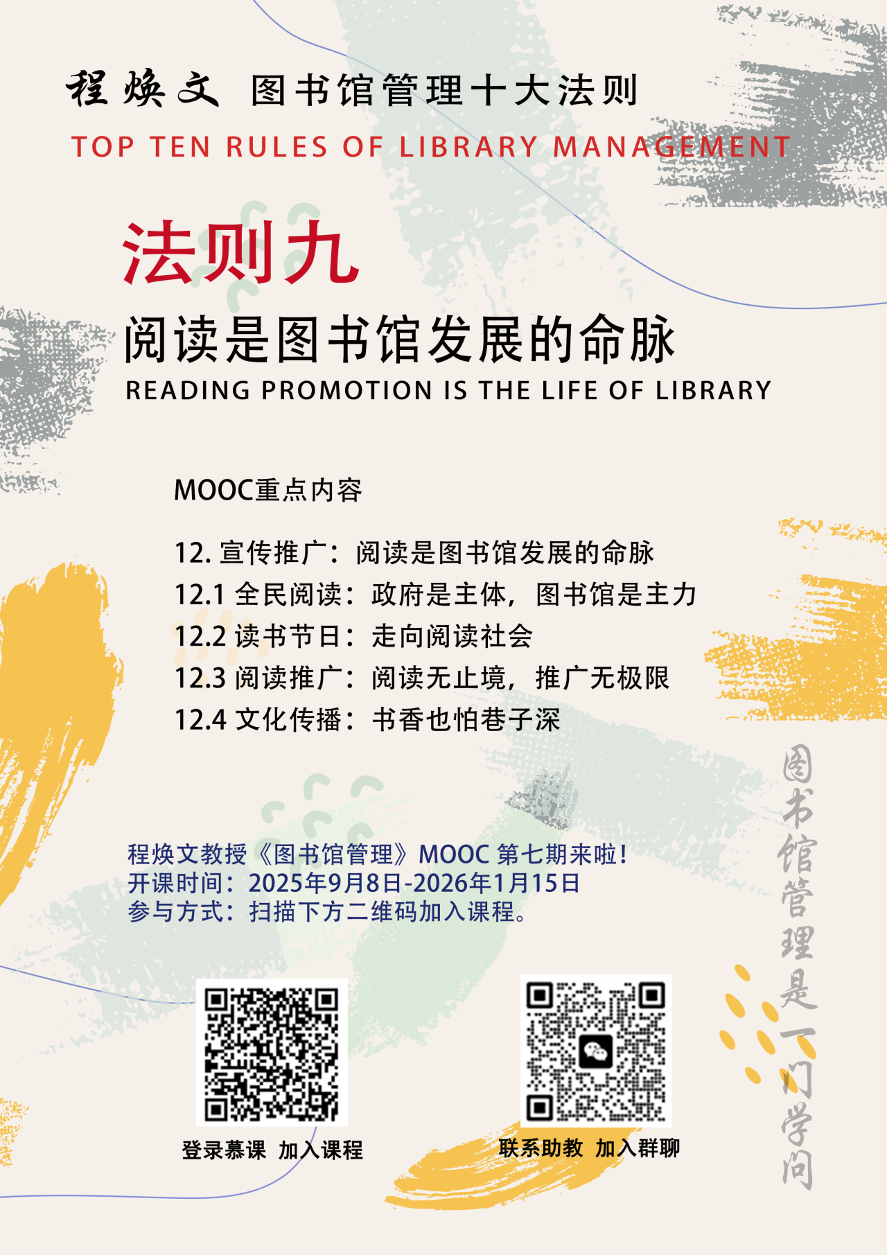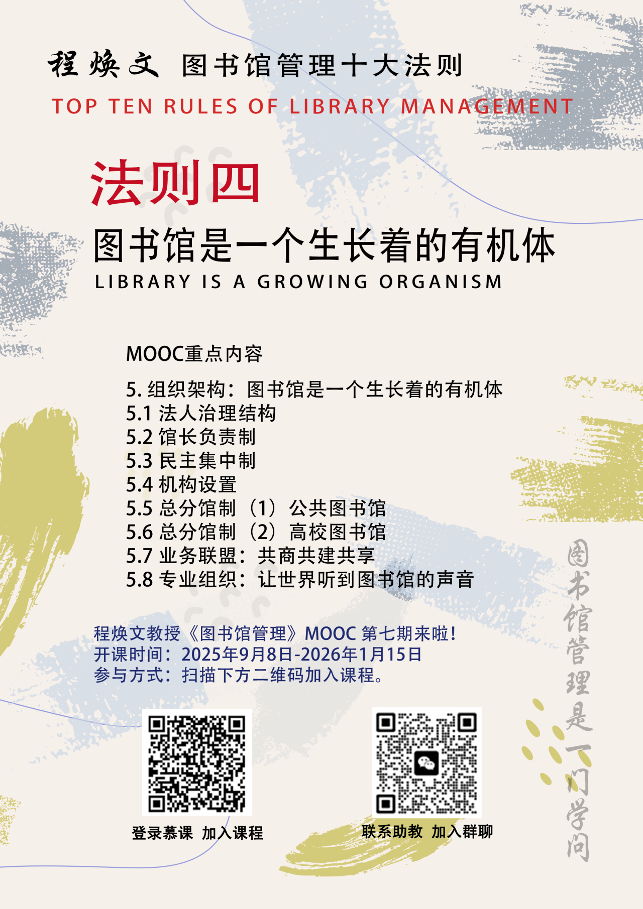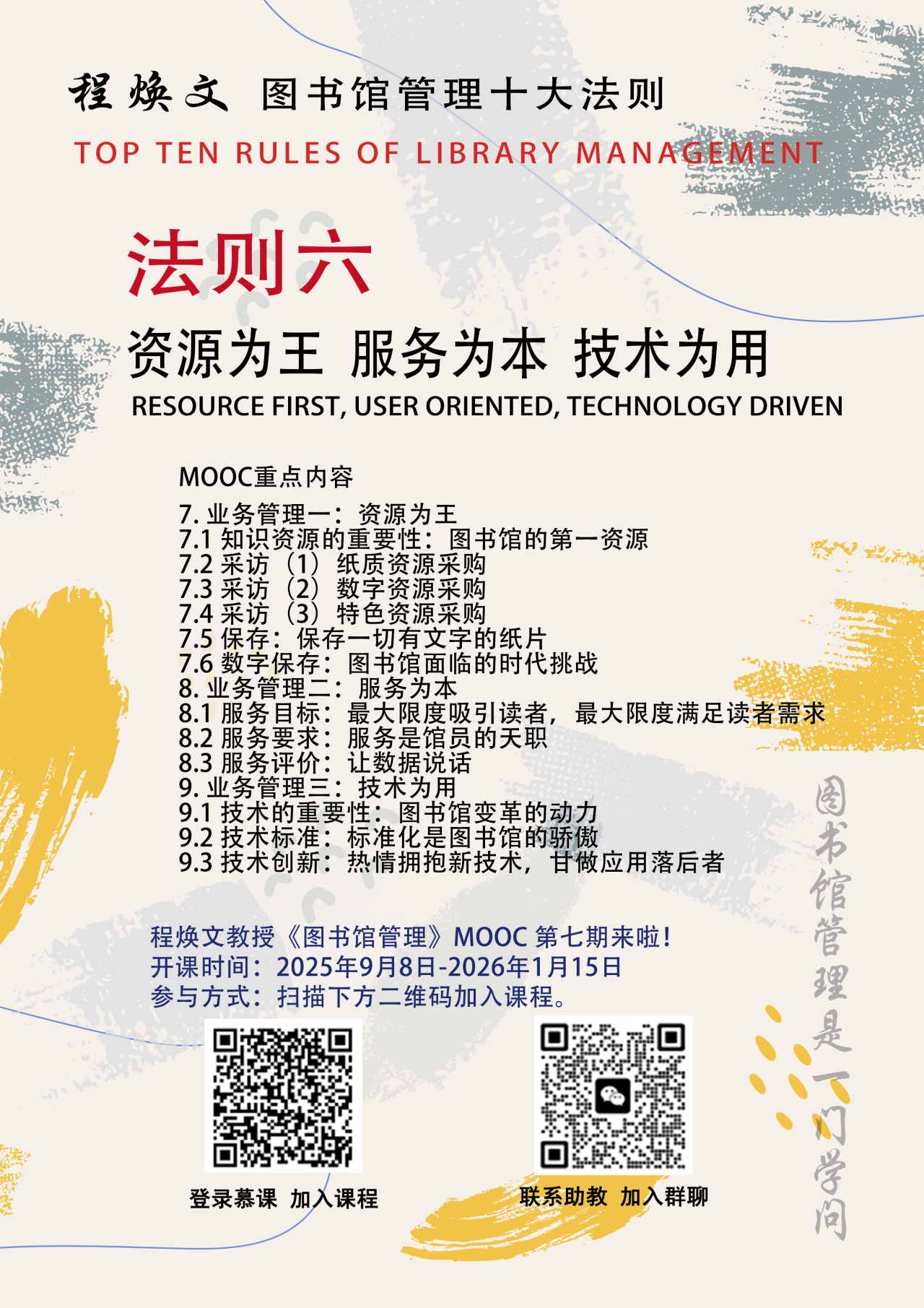 程焕文《图书馆管理》MOOC新学期 开讲啦!