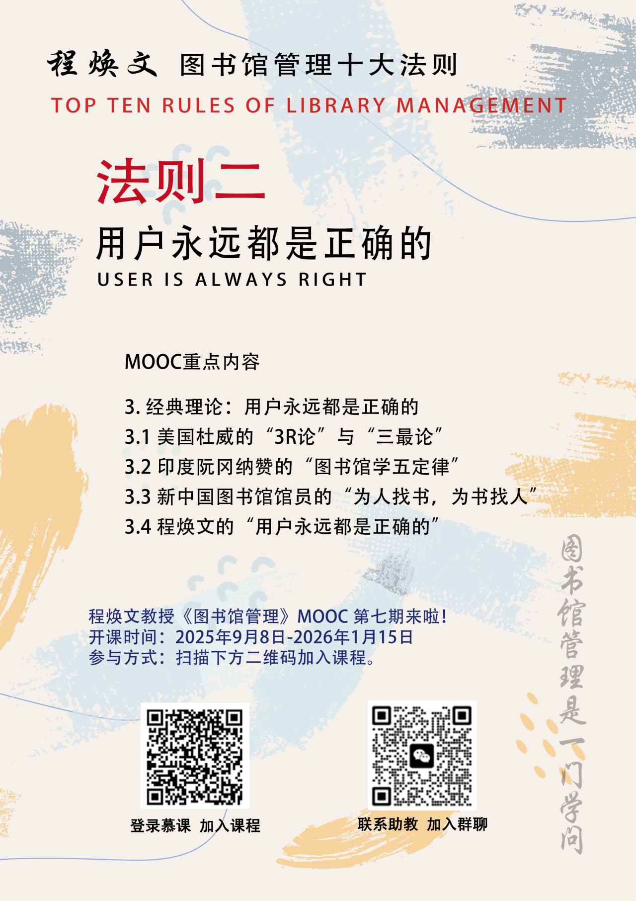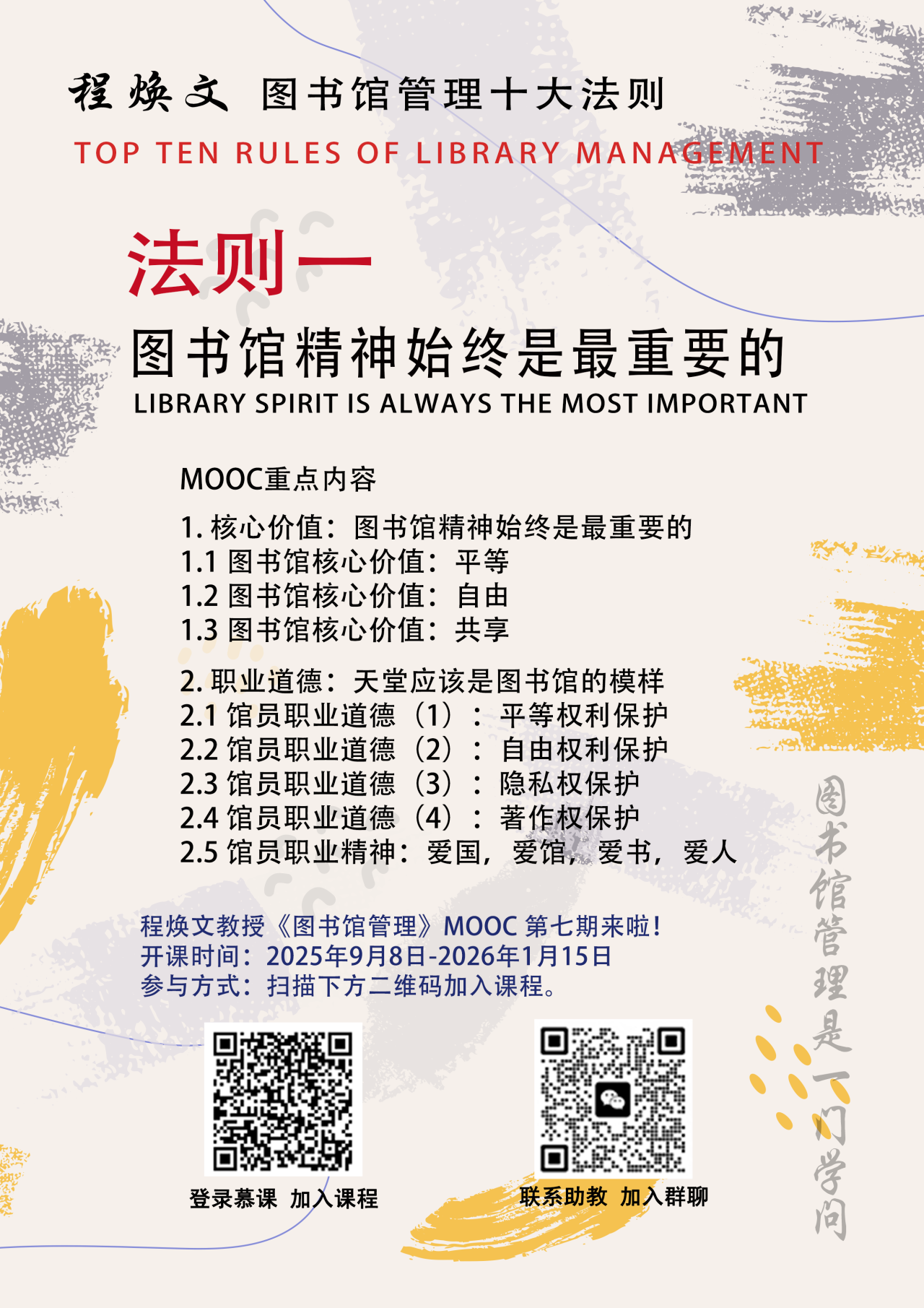 程焕文《图书馆管理》MOOC新学期 开讲啦!