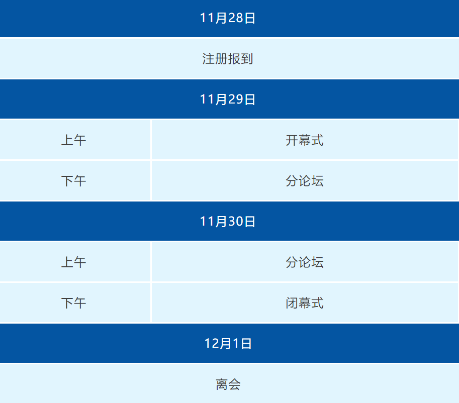 | 备注:选择入住会议协议酒店,可于11月28日在酒店大堂办理会议报到;如不入住会议协议酒店,可于11月29日在会议开幕式前办理报到,具体地点待后续通知。 |
