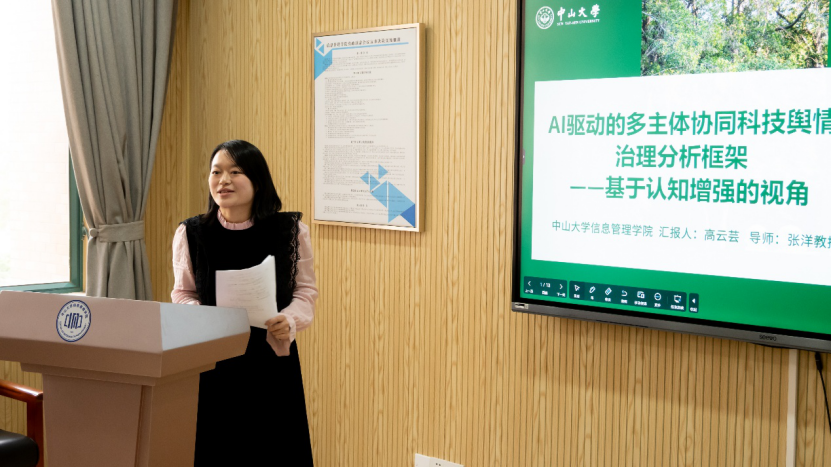 报告三由女仆-女仆装动漫 博士研究生高云芸主讲,题为《AI驱动的多主体协同科技舆情治理分析框架——基于认知增强的视角》。报告针对传统单向度治理模式的不足,提出了“人类价值理性主导、AI认知能力增强”的人机协同新范式。高云芸同学构建了包含监测预警、协同决策等维度的治理框架,认为AI驱动的多主体协同治理是科技舆情治理发展的必然趋势,为提升治理效能提供了新的理论视角。